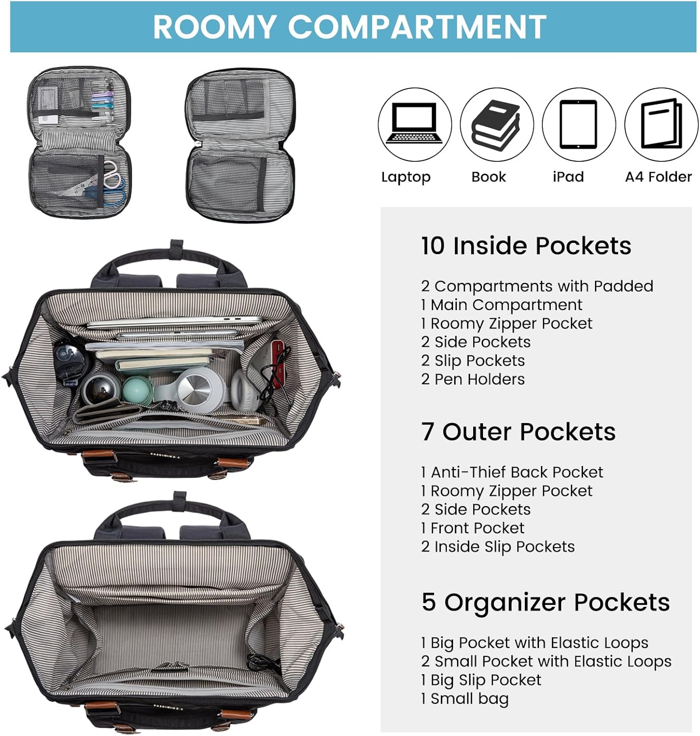 Huge Opening Design: Impressed by nurse baggage, this ladies’s laptop computer backpack includes a extensive opening that means that you can simply see all of your objects inside and shortly entry what you want! Made with high-quality polyester, thick shoulder straps, elegant customized zippers, and bolstered stitching, this backpack ensures an ideal person expertise