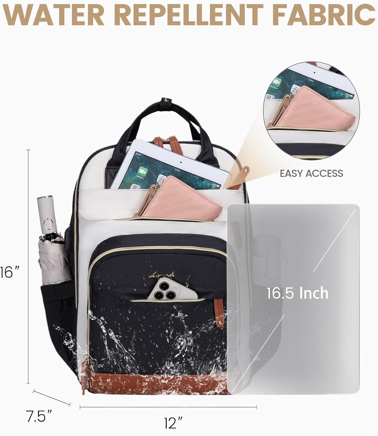 【Multi-Compartment Laptop computer Backpack Ladies】- Laptop computer backpack for ladies has a complete of 6 compartments and 26 pockets, that are handy on your work provides,school provides and journey necessities.Dimension: 12″L 16″H 7.5″D. weight: 1.8lb.