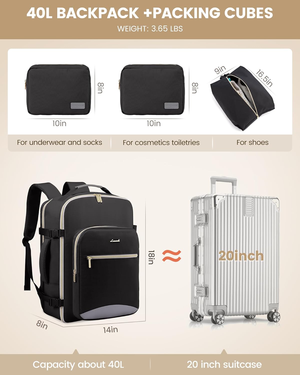 ✈【With 3 Packing Cubes and moist pockets】: This waterproof backpack for girls is provided with further 3 storage pockets, together with 2 carry-on storage pockets and 1 shoe pocket. The outfitted dry and moist separation pockets can maintain toiletries and moist garments.