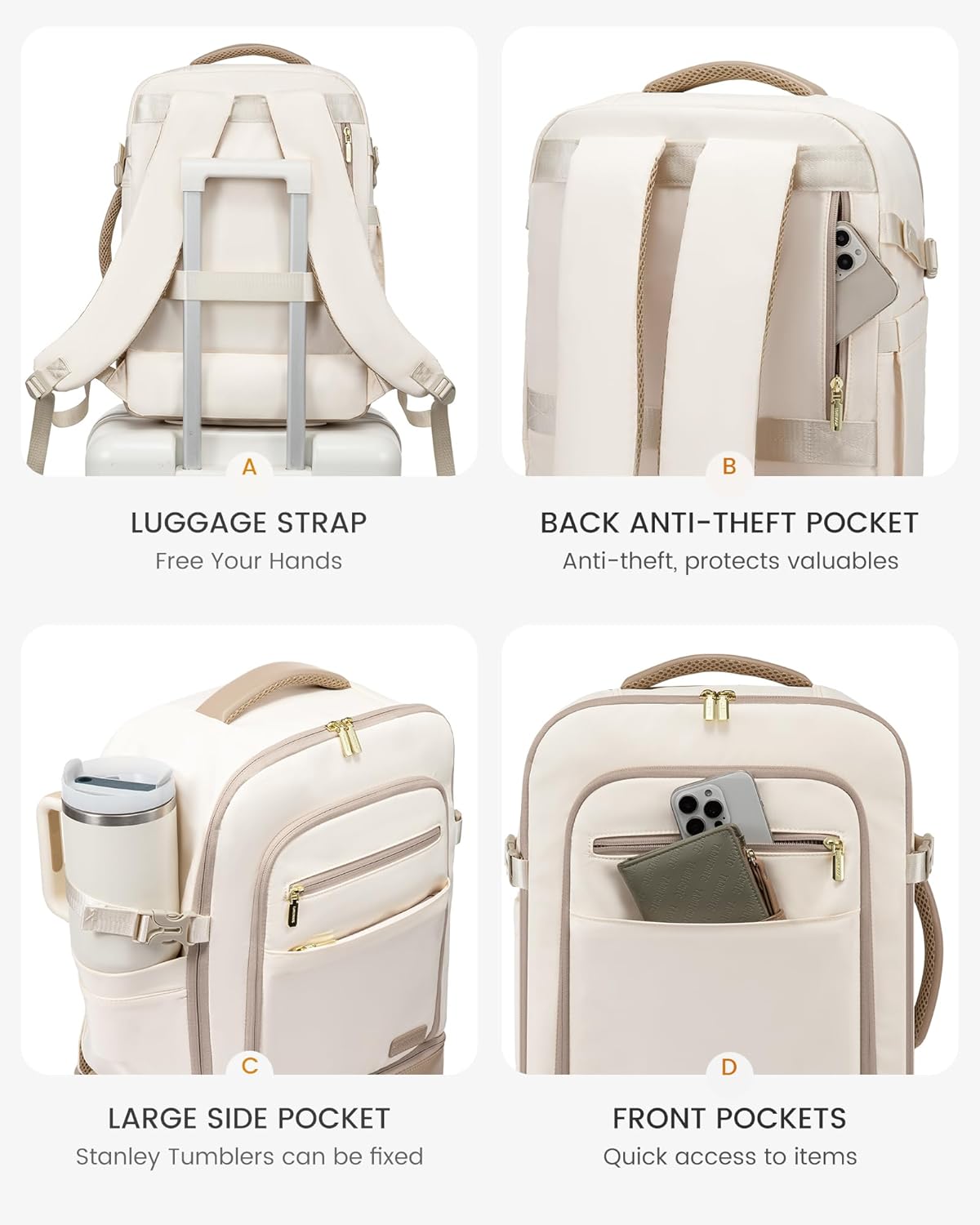 【Versatile Carrying Choices】This womens journey backpack is designed for versatile use, permitting you to hold it by hand or as a stick with it bag. It is flight-approved as a private merchandise, making it preferrred for vacationers. An ideal present for journey fanatics, it retains all journey necessities simply accessible.