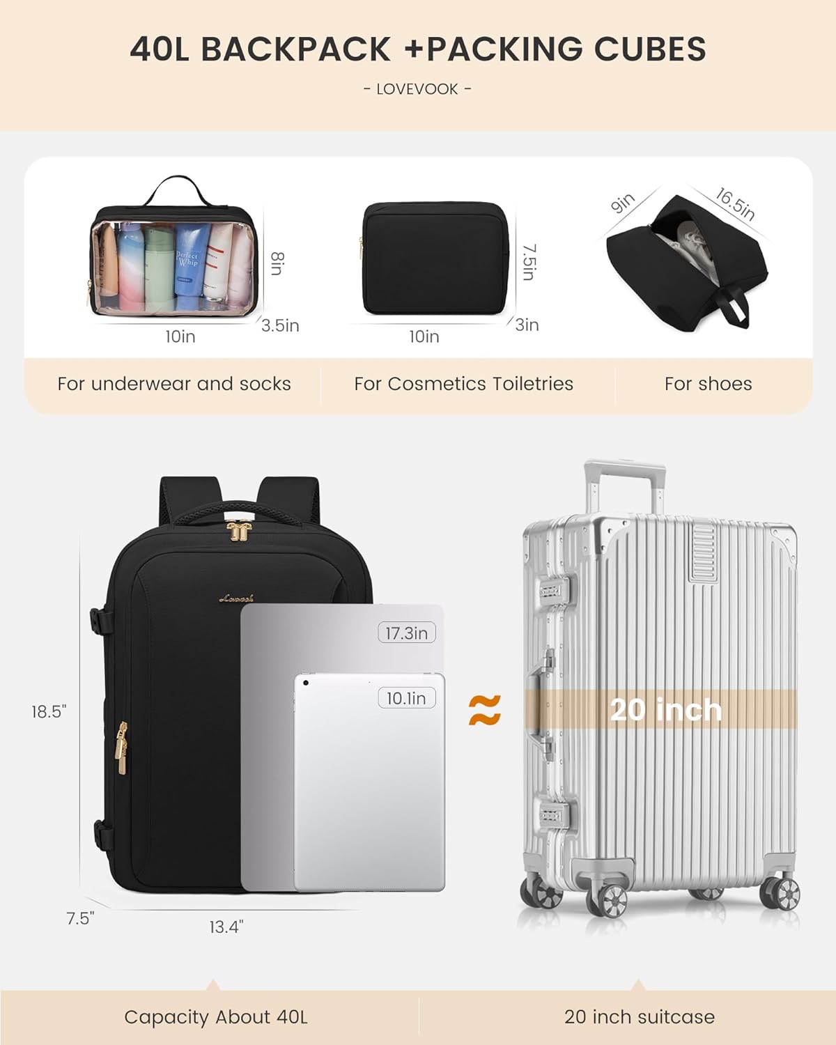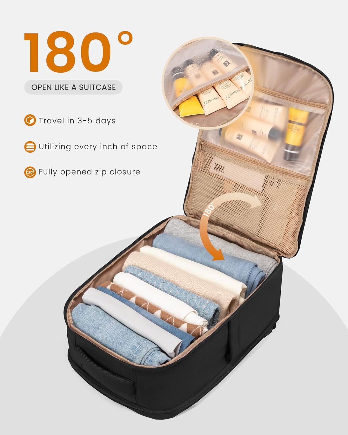 【Airline Permitted Private Merchandise】With 18x14x8 inches, the keep on backpack can slot in overhead compartments and underneath airplane seats. The 180-degree opening design for compartments expedites safety checks, making your airport expertise as easy as your travels.