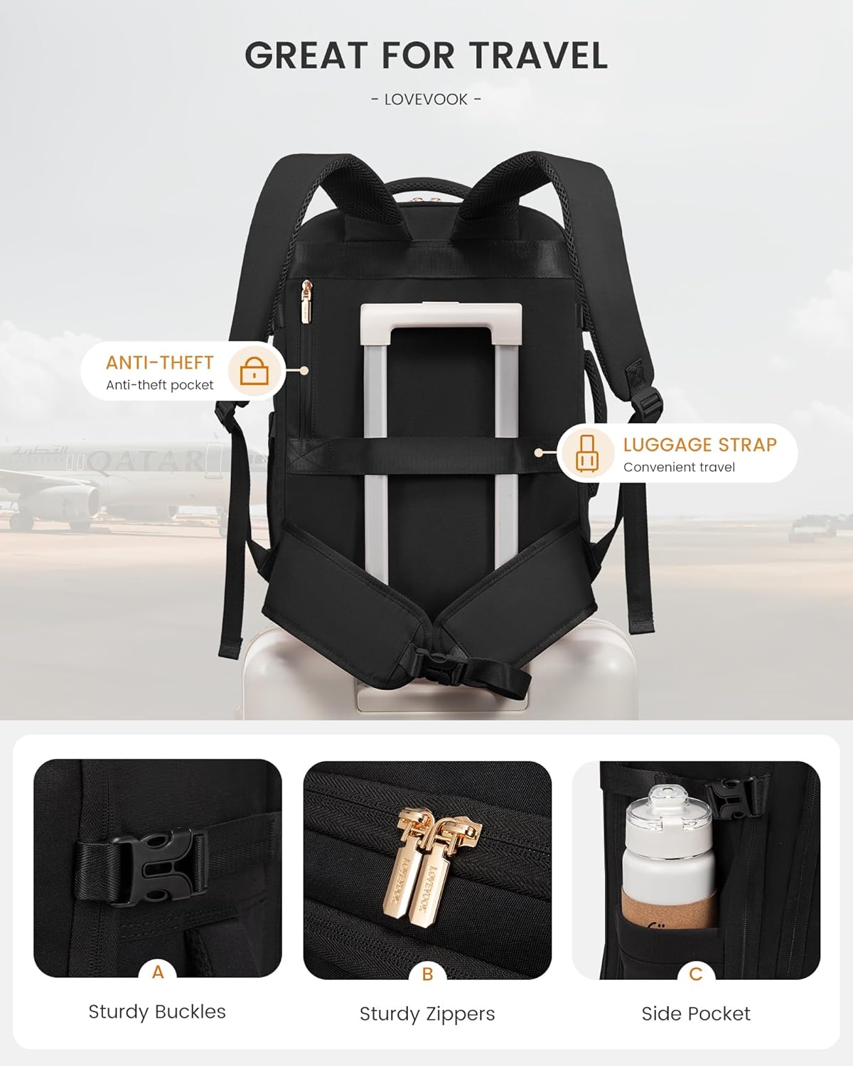 【Ergonomic Consolation for Each Journey】LOVEVOOK journey backpack encompasses a waist belt that shifts weight to your hips, easing shoulder pressure and boosting stability on tough terrain, whereas preserving the pack safe. Adjustable shoulder straps guarantee an ideal match for lasting consolation on lengthy journeys.