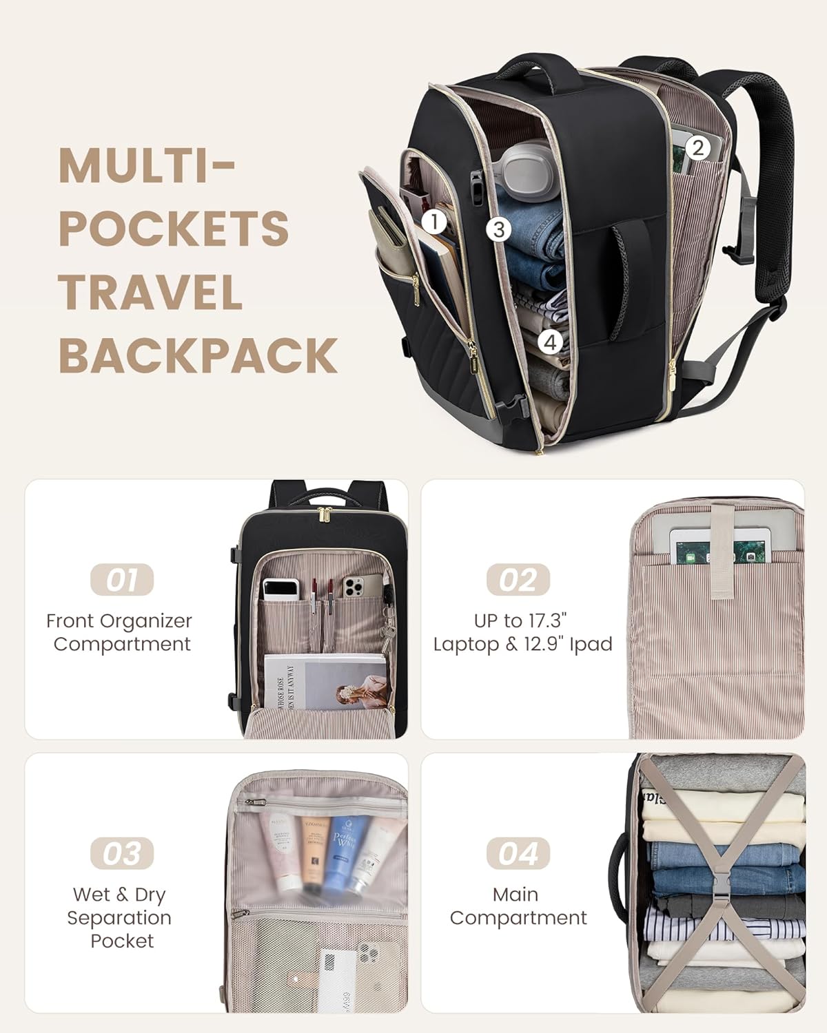 Lengthy-Lasting & Consolation: Our journey backpack is manufactured from tear-proof, waterproof and abrasion-resistant supplies, this carry-on backpack has thickened delicate and comfy cotton padding on the again and shoulder straps to face up to the trials of journey and supply consolation throughout lengthy journeys comfortability.