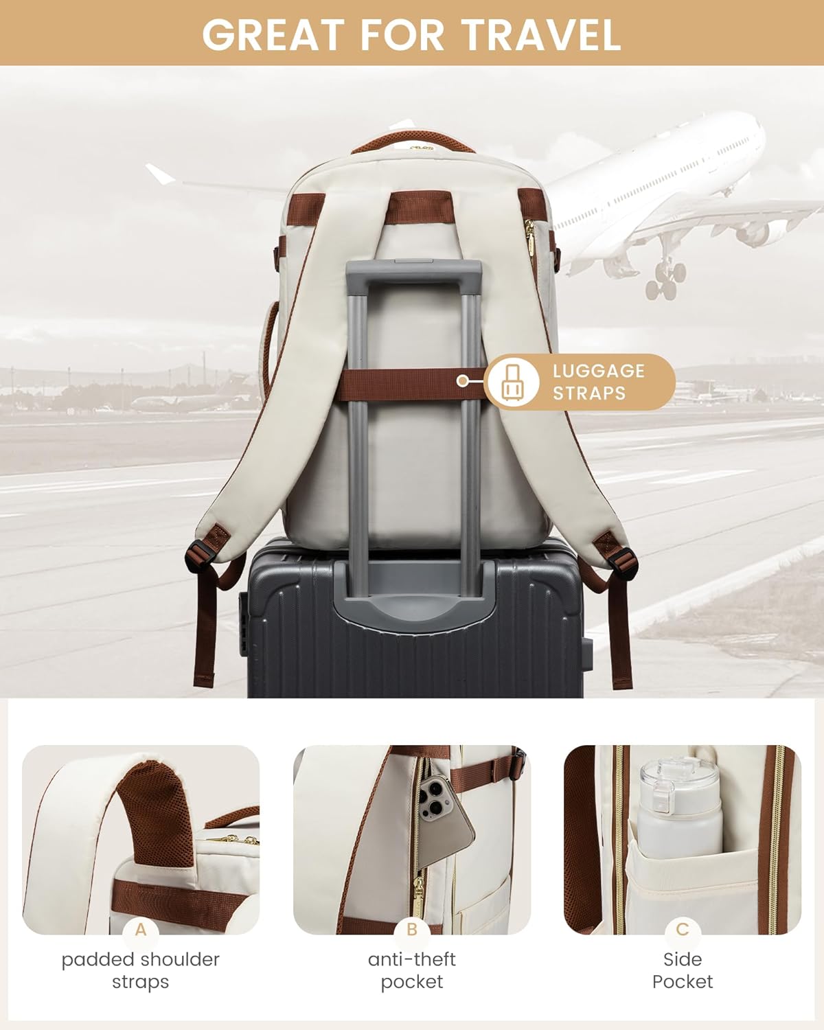 ✈【Private Merchandise Journey Luggage for Ladies】: Journey backpack keep it up flight authorized. Gentle weight, and straightforward to put on – excellent for air journey carry-on! It suits beneath the seat or within the overhead compartments simply. You may simply convey it on board. No must examine it on the gate. Journey backpack private merchandise dimension. This keep it up bag Meets the necessities of budget-friendly airways like Spirit, Frontier, and JetBlue.