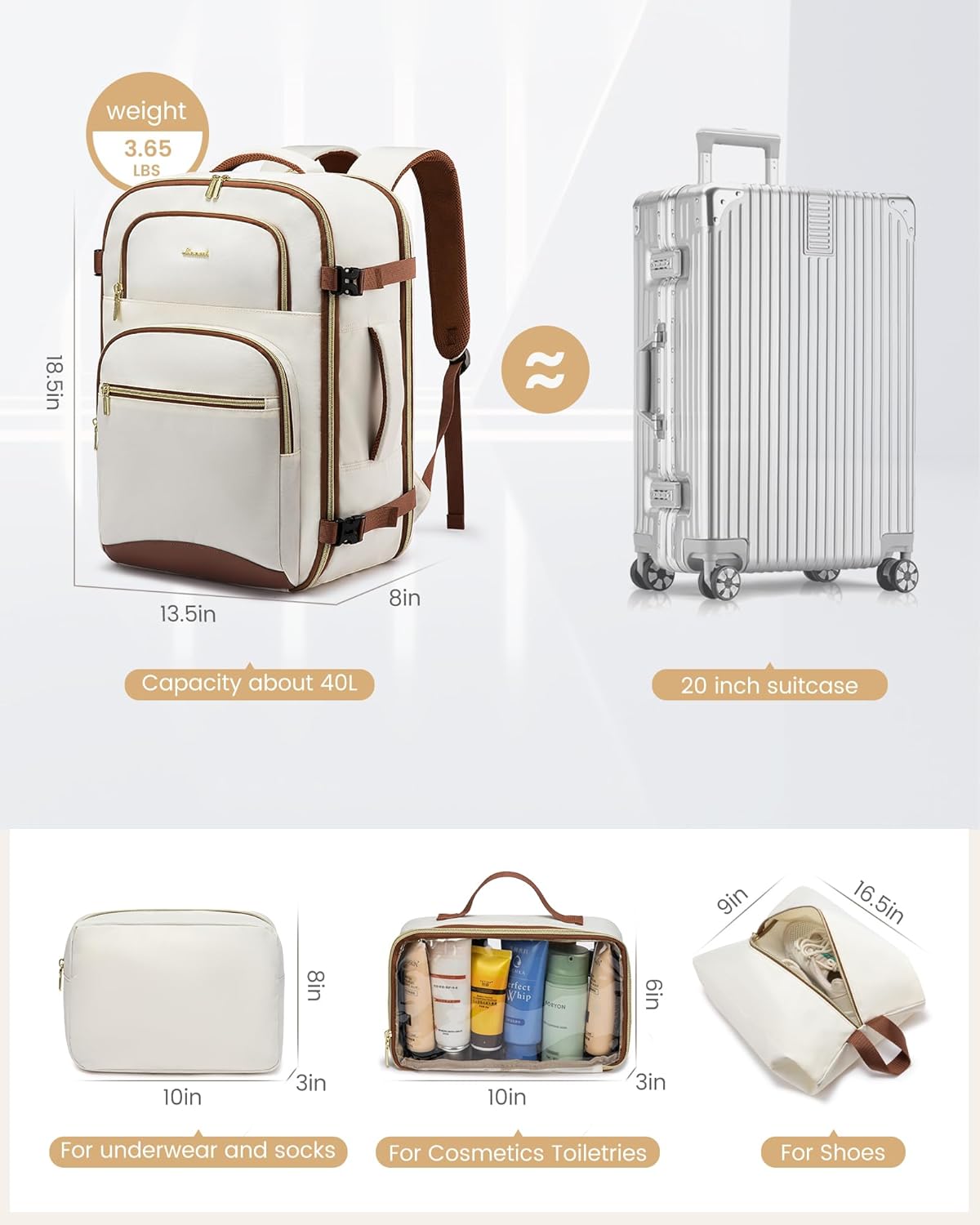 ✈【Keep on Backpack Opens Like a Suitcase】: 180°opening design, absolutely opened zip closure, you may rummage by your garments with out destroying every little thing, using each inch of house. Complete of 4 compartments and 16 pockets make every little thing simply accessible. Pack 3-7 days price of journey necessities for girls with ease. 40l journey backpack for girls males: 18.5*13.5*8 inch weight: 3.65 lbs.