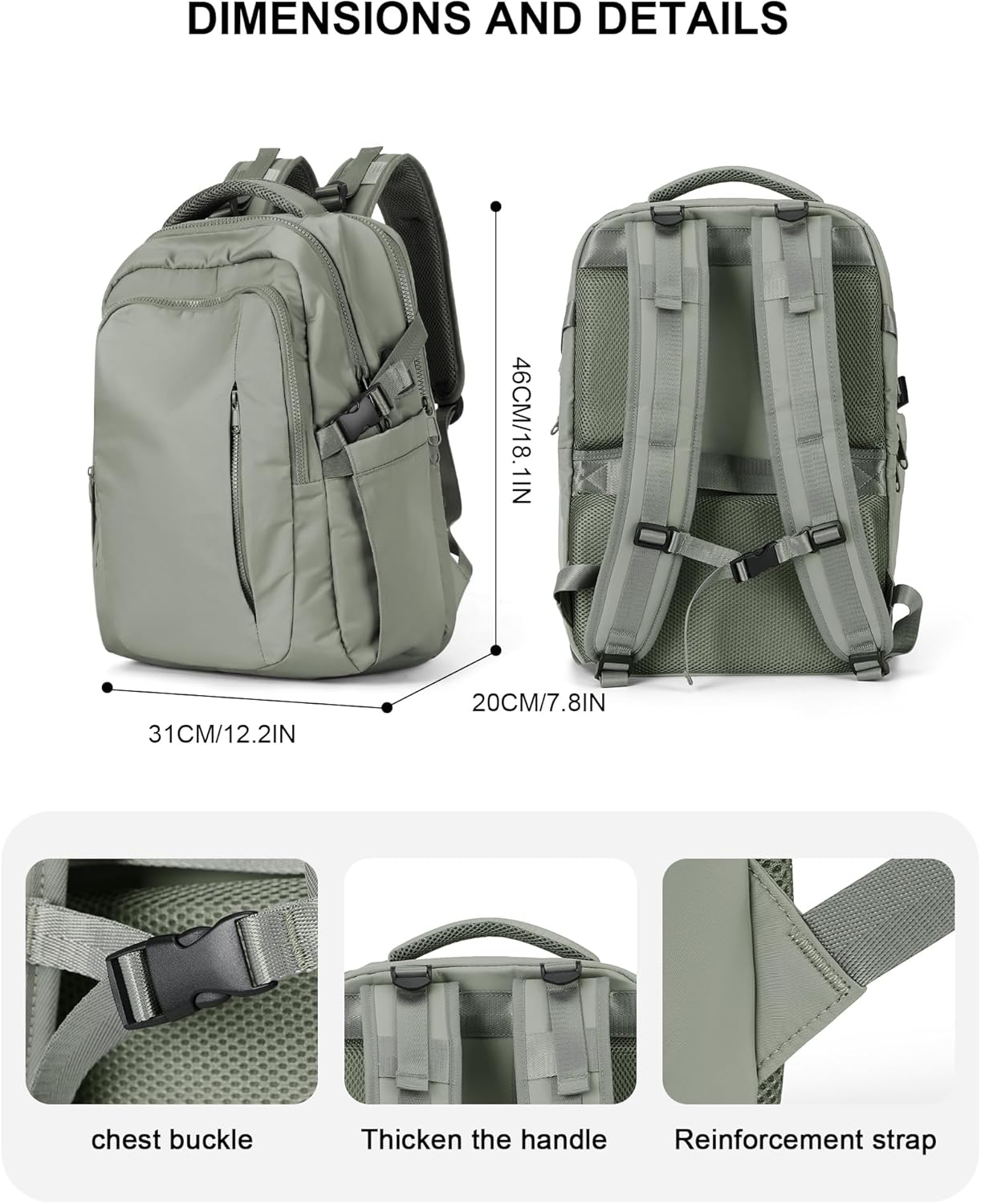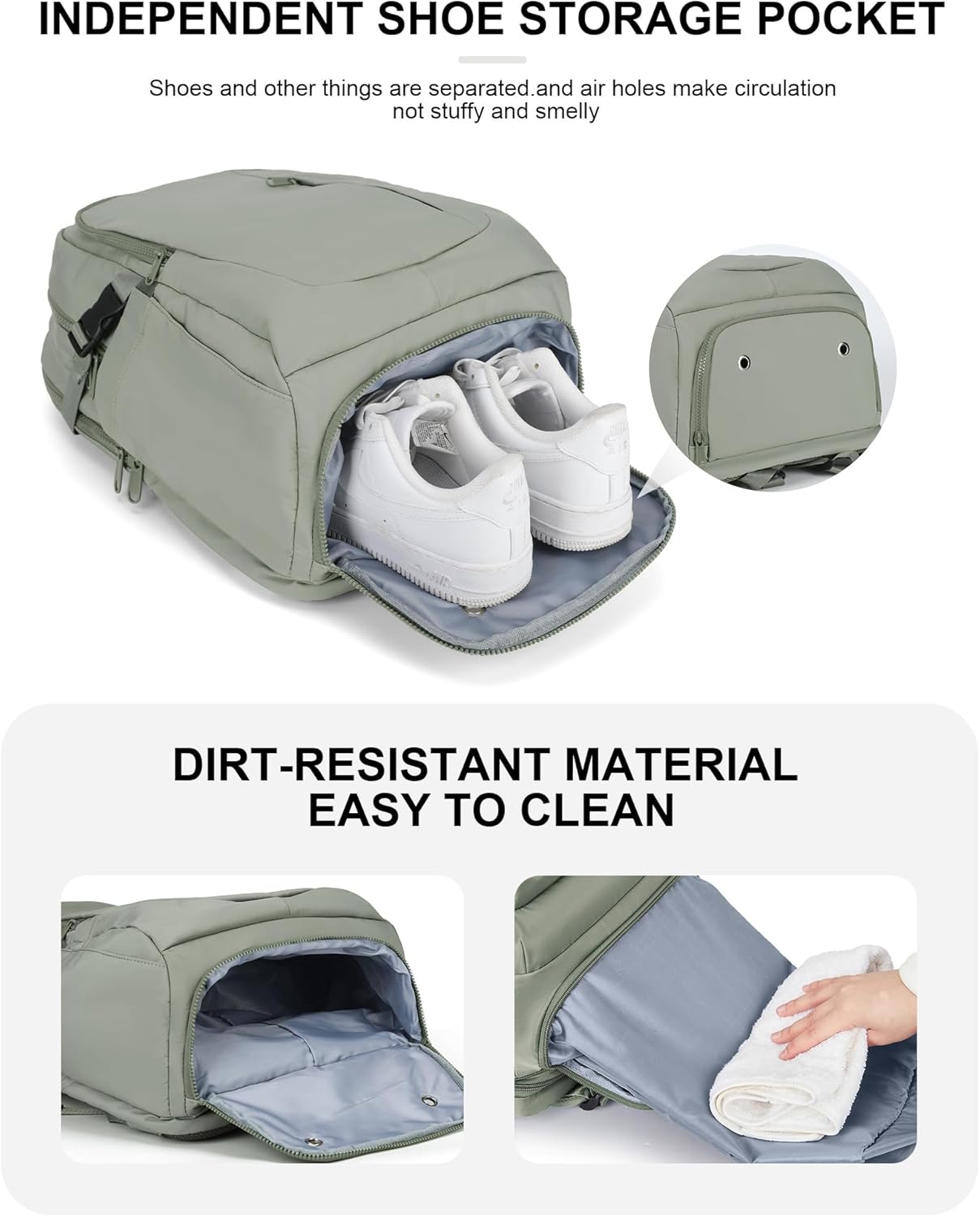 Environment friendly group: This journey backpack options a number of compartments, together with a devoted shoe compartment, a separate laptop computer compartment, and varied smaller pockets, that will help you preserve your belongings organized and simply accessible.