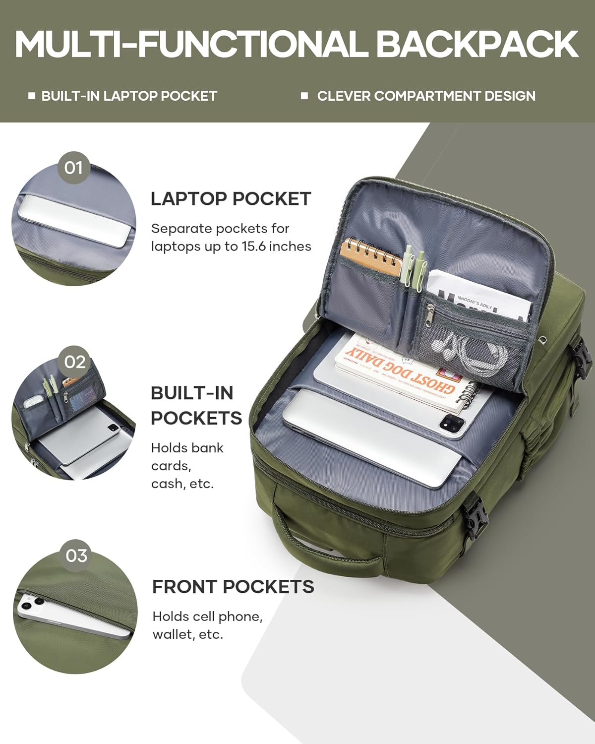 Clients discover this backpack spacious sufficient to suit 4 outfits and a couple of pairs of footwear for a 5-day competition, and respect that it is sufficiently small to suit below airplane seats. The bag is well-made with thick materials, comfy straps, and is available in varied colours. They like its journey performance as a carry-on, and one buyer notes the waterproof pocket on the backside for spill-able objects.