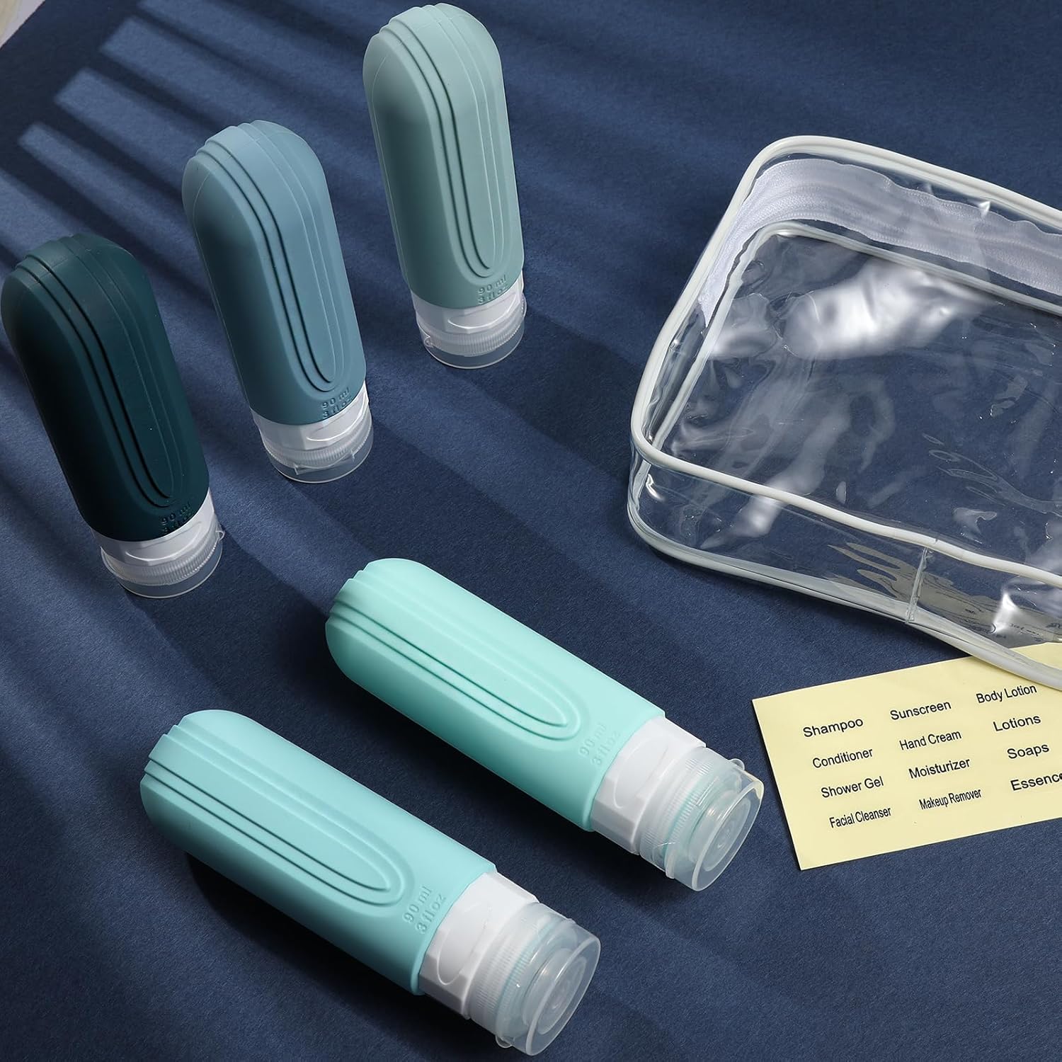 Travel Bottles for Toiletries, 5 Pack TSA Approved Travel Size Containers, 3oz Leak Proof Refillable Travel Accessories for Shampoo Conditioner, BPA Free Travel Bottles with Toiletry Bag
