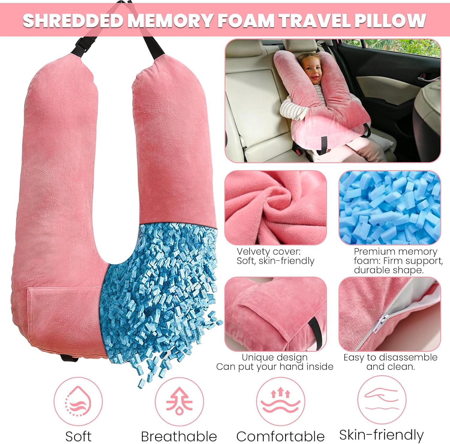 Ergonomic U-Formed Design: The U-shaped design pairs completely with seat belts, offering head and neck help for correct posture and enhanced security throughout automobile rides. Appropriate for youths, adults, and seniors.
