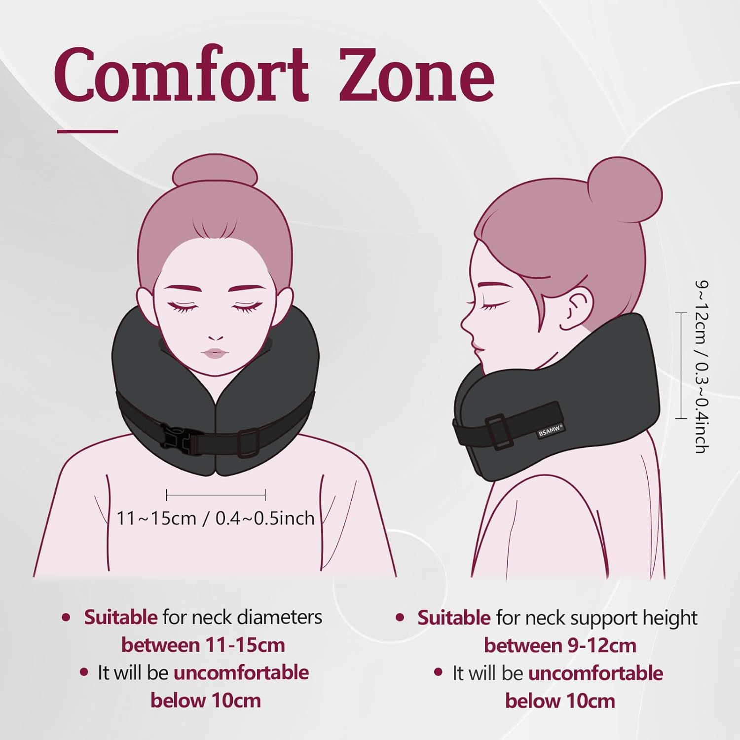 Be aware: As a way to defend the atmosphere, our pillows are packaged transparently. The journey pillow is designed to offer optimum consolation inside a neck circumference of 10-15cm and a neck help top of 9-12cm. You probably have another questions, please contact our after-sales service. Thanks.